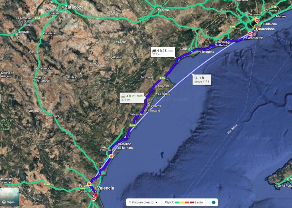 Si venís desde Barcelona, el AVE es nuevamente la mejor opción. El tren de alta velocidad os permitirá viajar cómodamente en 3 horas y llegar a Valencia rápidamente.